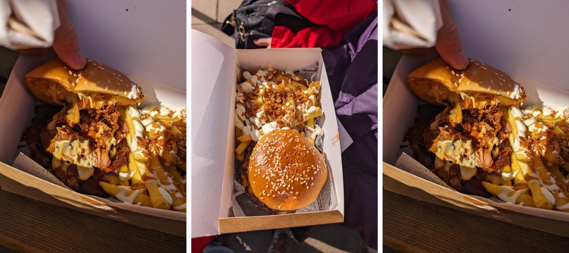 A real unctuous treat which was truly sublime! Highly recommend trying the smash burger! Very affordable price which included chips too. Sat outside of the bench provided