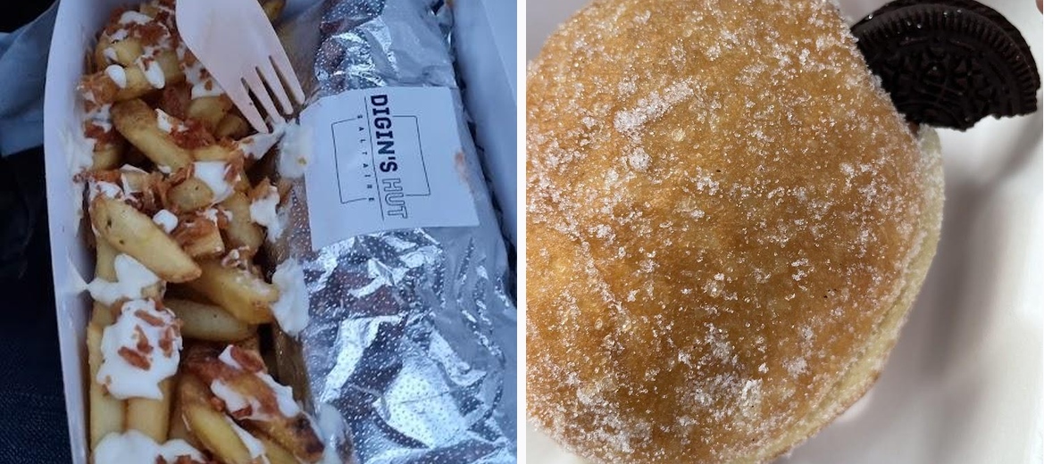 Burgers ready within 10 minutes. Crispy fries where you can actually taste the truffle. Loved the complexity of the burger fillings- this is a burger with all the works. Almost Famous used to be my favourite burger place, but Digin's Hut beats it. Benches outside while you wait for your takeaway. £12 for the 'Rate my Takeaway beef and £10 for the pulled pork burger (which is probably my favourite), Doughnut was thick and heavy.